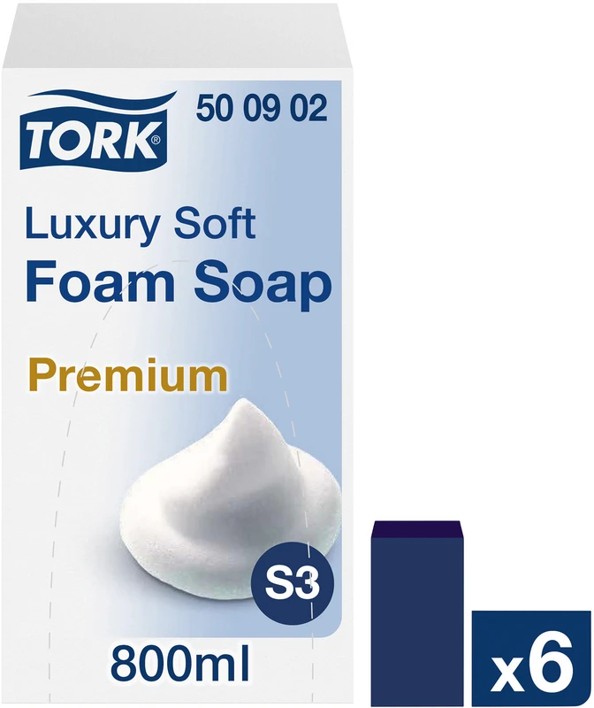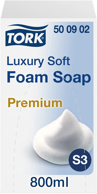 TORK® luxuriöse Schaumseife S3 ist eine reichhaltige Schaumseife mit einem zarten Duft für angenehmes Händewaschen. Die Seife ist sanft zur Haut und dermatologisch getestet. Der üppige Seifenschaum hinterlässt ein weiches Hautgefühl. Nutzen Sie die Seife mit unserem S3 automatischen Seifenspender von TORK®, der mit seinem berührungslosen Design Ihren Gästen eine verbesserte Hygiene und einfache Anwendung bietet.