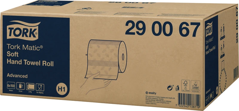 Verwöhnen Sie Ihre Gäste mit dem TORK® Matic® weichen Rollenhandtuch Advanced. Es bietet gute Händetrocknung und hat ein schönes, aufgeprägtes Blattmuster in Grau. Diese Handtücher eignen sich für die TORK® Matic® Spender für Rollenhandtücher, die für eine einfache Wartung in Waschräumen mit hoher Besucherfrequenz entwickelt wurden. Das spart Zeit und kontrolliert dank Einzelblattausgabe auch den Verbrauch.