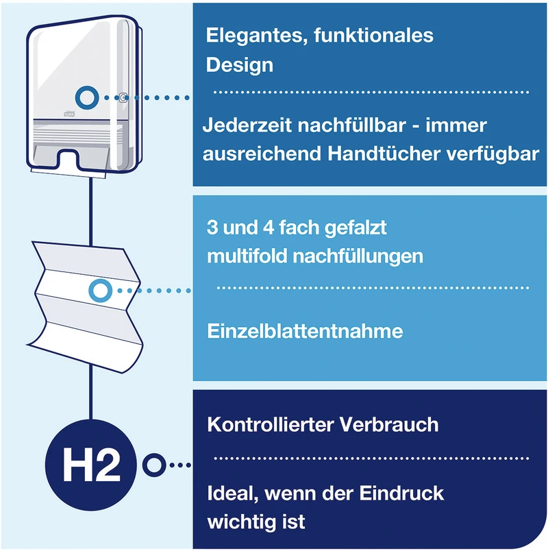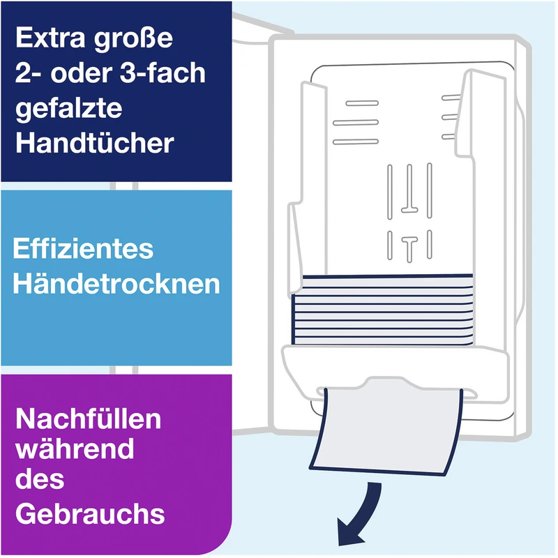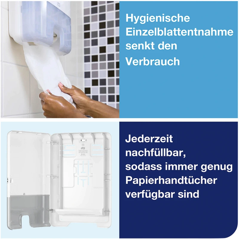 - Geringerer Verbrauch und mehr Hygiene durch Einzeltuchentnahme