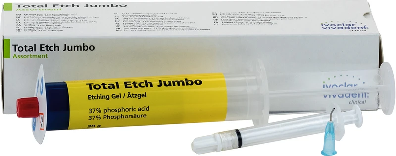 37 % Phosphorsäure Ätzgel zur Schmelzätzung und Dentinkonditionierung im Rahmen von Versiegelungen, direkten Compositefüllungen sowie der adhäsiven Befestigung laborfertiger Restaurationen aus Vollkeramik oder Composites. Schnell und effektiv auftragbar dank konstanter Viskosität. Gut vom Zahn differnezierbare Farbe. Ökonomisch dank Verdrängerdorn am Spritzenkolben. Praktische Jumbo-Spritze zum Nachfüllen.
