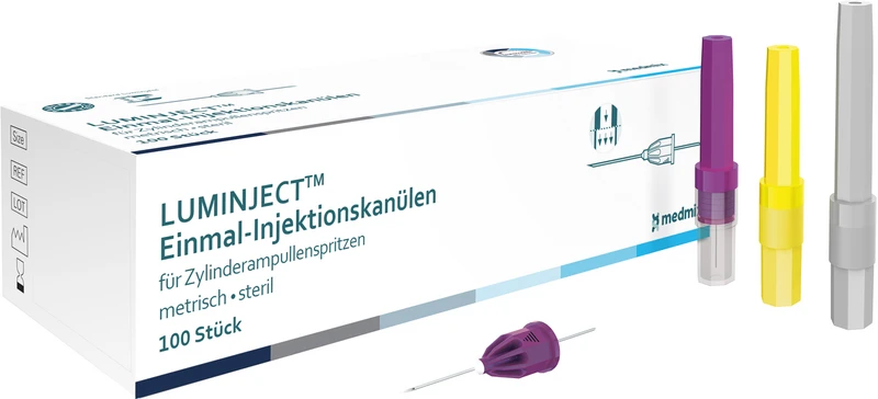 Die transcodent LUMINJECT® Dental-Injektionskanülen, entwickelt für alle Zylinderampullen-Spritzen, sind ideal für eine Reihe von zahnärztlichen Anwendungen, einschließlich Infiltrations- und Intraligamentäranästhesie. Diese Nadeln verfügen über ein größeres Lumen aufgrund der dünneren Wandstärke, und ermöglichen so einen höheren Durchfluss mit reduziertem Injektionsdruck, wodurch das Schmerzempfinden weiter minimiert wird. Die Anschliff-Markierung auf dem Sockel unterstützt die Ausrichtung des abgeschrägten Nadelendes und verringern das Risiko von Gewebeschäden. Ihr Design ist besonders vorteilhaft für pädiatrische und schmerzempfindliche Patienten und macht diese Nadeln zu einer Top-Wahl für komfortable und effiziente zahnärztliche Behandlungen.