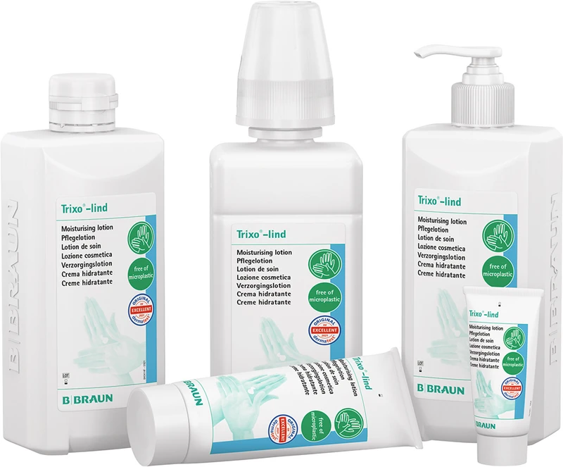 - Rückfettende Komponenten geben der Haut das durch häufiges Waschen und Desinfizieren entzogene Hautfett zurück