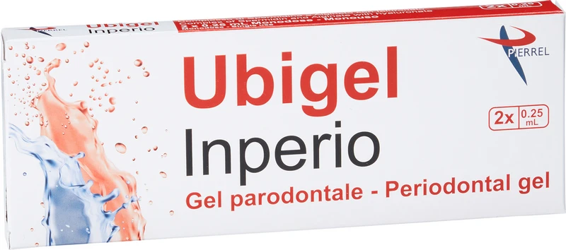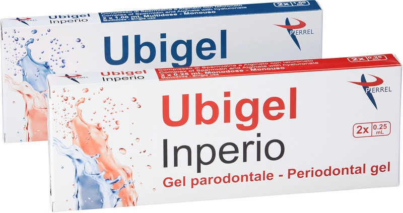 Eine nicht-chirurgische Lösung für die Parodontaltherapie. Das erste Parodontalgel auf der Basis von Spermidin, einem physiologischen Bestandteil des menschlichen Körpergewebes mit einer hohen Kapazität zur Förderung der Reparatur von Parodontalgewebe.Wie funktioniert Ubigel Inperio? Ubigel Inperio erzeugt einen weichen Zement in der Parodontaltasche, der die folgenden physikalischen Aktionen auslöst: Wirkung der Mechanoreduktion: stimuliert die durch die Entzündung beeinträchtigten Fibroblasten, fördert den Austausch und die Produktion von Proteinen und aktiviert die Zellregeneration, die den Heilungsprozess von Parodontitis bestimmt. Mechanische Abrasionswirkung auf den Bakterienfilm in der Zahnfleischtasche, um dessen Anwesenheit zu reduzieren oder zu beseitigen. Versiegelnde Wirkung gegen die Ausbreitung von Bakterien dank der schleimig-adhäsiven Eigenschaften der polymeren Komponenten. Okklusivwirkung mit dem Ziel, das Eindringen von Speiseresten zu verhindern, die die Infektion verstärken.Ubigel Inperio Zwei Gele gleich doppelte Wirkung! Ein Komplex aus