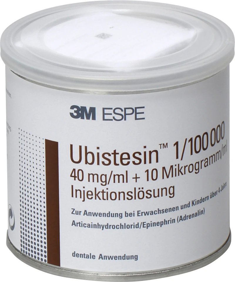 Produktinformationen "Ubistesin Dose 50 Stück Kappe gold, 1:100.000"