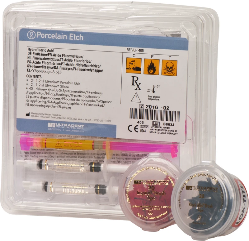 Ultradent Porcelain Etch & Silane Kit 2 x 1,2 ml Etch, 2 x 1,2 ml Silane, 40 Tips