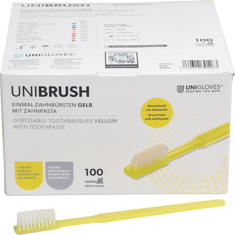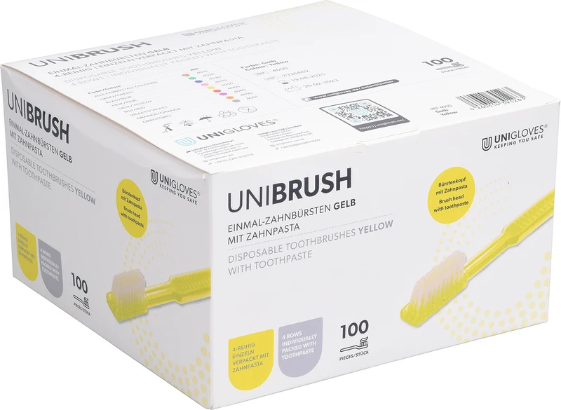 UNIBRUSH Einmal Zahnbürsten Box 100 Stück gelb