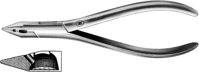 Verchromt. Nur desinfizierbar. Biegt harten Draht bis maximal 0,9 mm. Schneidet harten Draht bis maximal 0,7 mm.