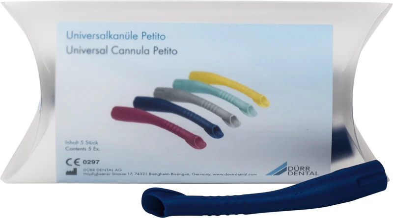 Universalkanülen Petito sind hochfunktionale Kanülen für Kinder, die eine ergonomische Behandlung ermöglichen. Die Universalkanüle Petito ist kleiner als die Universalkanüle und sorgt mit den Protect-Nebenlufteinlässen für bestmöglichen Schutz vor Reflux aus dem Saugsystem.