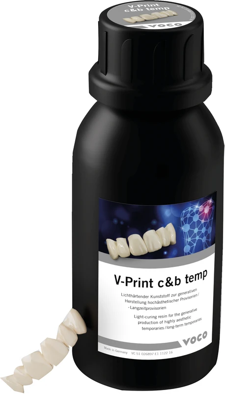 Lichthärtender Kunststoff zur generativen Herstellung hochästhetischer Provisorien/-Langzeitprovisorien.