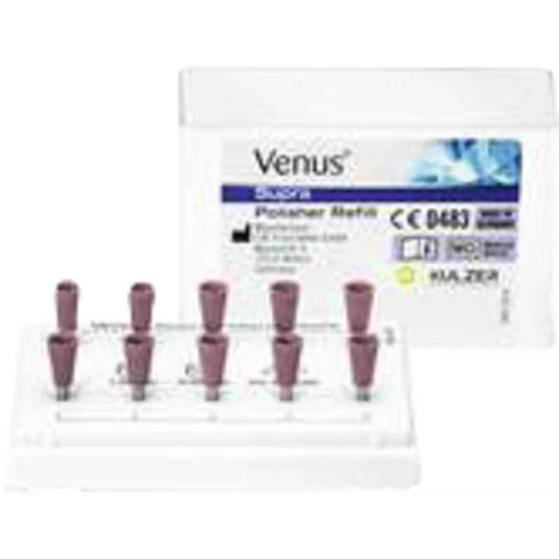 Die mit mikrofeinem Diamantpulver hochgefüllten Silikonpolierer stellen einen lang anhaltenden, natürlichen Hochglanz sicher. Venus® Supra ist ein hochleistungsfähiges Poliersystem, das mit Vor- und Hochglanzpolierern in fünf unterschiedlichen Formen eine universelle Lösung für alle Komposit- und Restaurationsarten bietet. Mit dem autoklavierbaren und damit wiederverwendbaren Venus® Supra Poliersystem werden die Polierergebnisse signifikant in nur zwei Arbeitsschritten verbessert.
