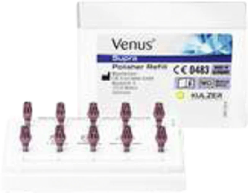 Die mit mikrofeinem Diamantpulver hochgefüllten Silikonpolierer stellen einen lang anhaltenden, natürlichen Hochglanz sicher. Venus® Supra ist ein hochleistungsfähiges Poliersystem, das mit Vor- und Hochglanzpolierern in fünf unterschiedlichen Formen eine universelle Lösung für alle Komposit- und Restaurationsarten bietet. Mit dem autoklavierbaren und damit wiederverwendbaren Venus® Supra Poliersystem werden die Polierergebnisse signifikant in nur zwei Arbeitsschritten verbessert.