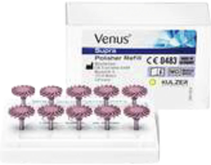 Die mit mikrofeinem Diamantpulver hochgefüllten Silikonpolierer stellen einen lang anhaltenden, natürlichen Hochglanz sicher. Venus® Supra ist ein hochleistungsfähiges Poliersystem, das mit Vor- und Hochglanzpolierern in fünf unterschiedlichen Formen eine universelle Lösung für alle Komposit- und Restaurationsarten bietet. Mit dem autoklavierbaren und damit wiederverwendbaren Venus® Supra Poliersystem werden die Polierergebnisse signifikant in nur zwei Arbeitsschritten verbessert.