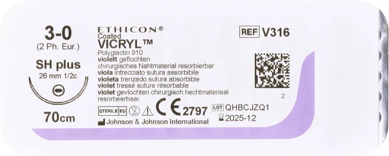 VICRYL (Polyglactin 910) ist ein synthetisches, resorbierbares Nahtmaterial mit einer polyfilen Struktur.