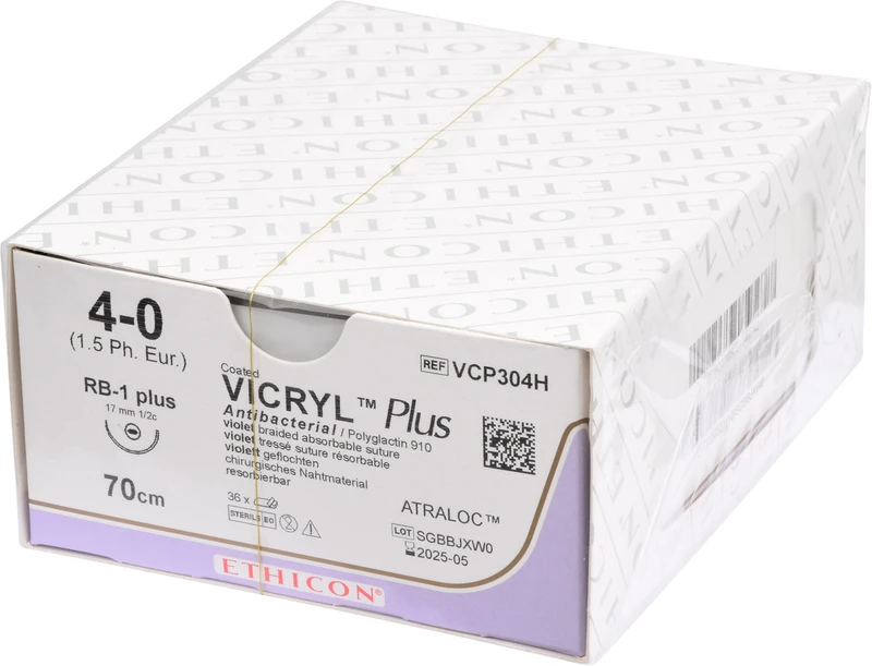 VICRYL Plus ist ein synthetisches, resorbierbares Nahtmaterial mit einer polyfilen Struktur. Dieses antiseptisch beschichtete Nahtmaterial mit Triclosan zeigt eine Reduzierung des Risiokos von postoperativen Wundinfektionen.