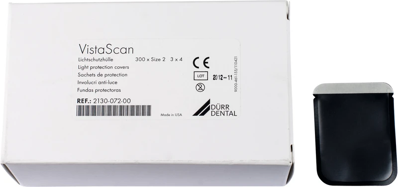 Lichtschutzhüllen für VistaScan für Dürr Speicherfolien. Selbstklebende Hülle schützt vor Lichteinfall und Kontamination.