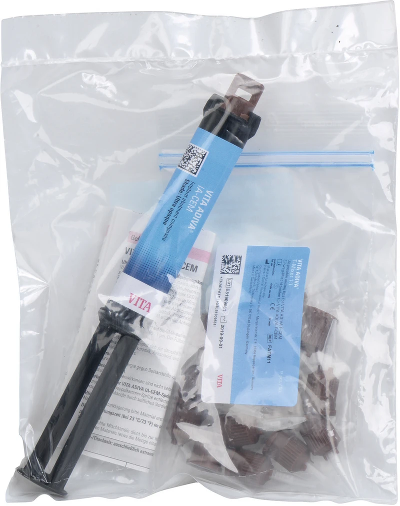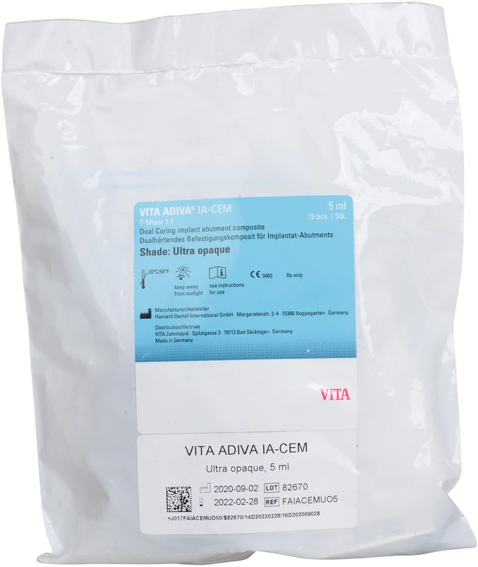 VITA ADIVA® IA-CEM ist ein ultraopakes, stark maskierendes, dualhärtendes Befestigungskomposit für die Implantatprothetik.