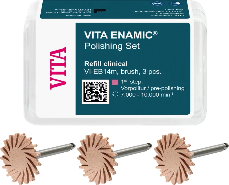 Die VITA ENAMIC® Polierkörpersets wurden für die sichere, wirtschaftliche und materialgerechte Oberflächenbearbeitung von Restaurationen aus Hybridkeramik in Praxis und Labor entwickelt. Die Sets beinhalten diverse Polierkörper zur Vor- und Hochglanzpolitur. Mit diesen Instrumenten können Kauflächen, Höcker, Fissuren und Kontaktpunkte der Restauration materialschonend poliert werden. Im Endergebnis sorgen diese Polierinstrumente für Oberflächen mit einem exzellenten Glanzgrad.
