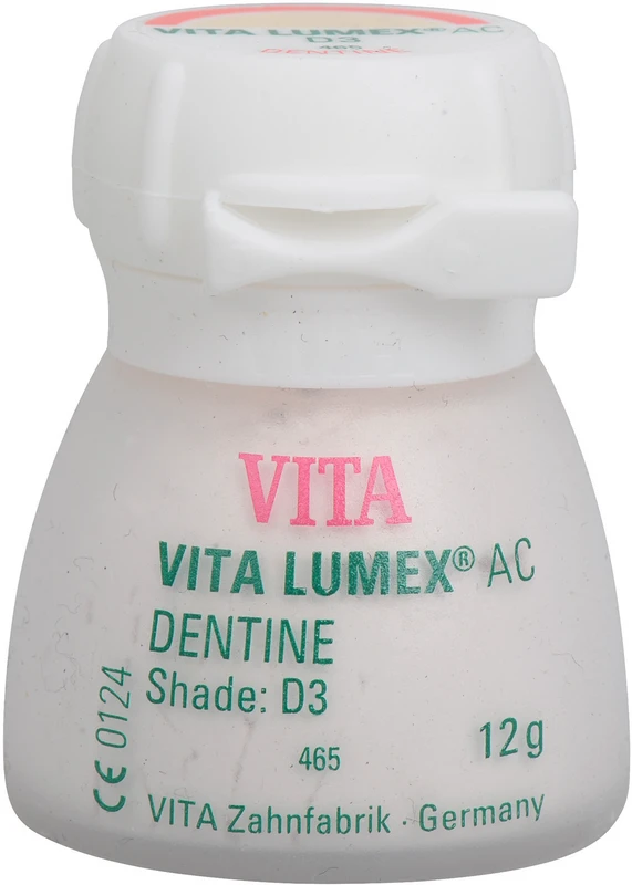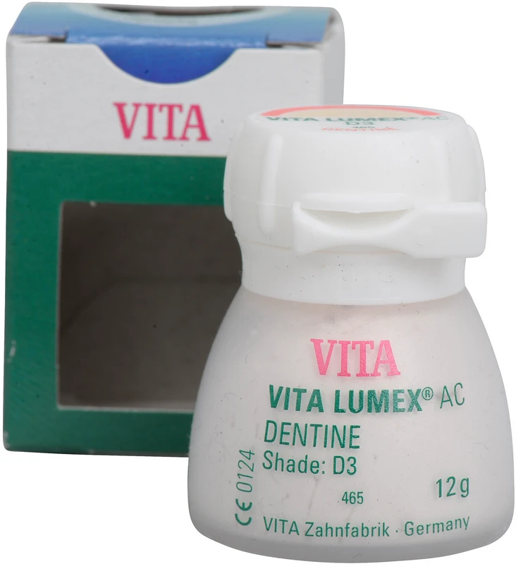 VITA LUMEX® AC ist ein leuzitverstärktes, glaskeramisches Verblendsystem mit innovativer Materialformel für farbtreue, lebendige und verlässliche Ergebnisse. VITA LUMEX AC® umfasst GINGIVA-, OPAQUE-, OPAQUE DENTINE-, DENTINE- und ENAMEL-Massen sowie vielfältige Effektmassen (z. B. OPAL TRANSLUCENT, FLUO INTENSE u.v.m.). Ideal abgestimmte Systemkompnenten wie Pinsel, Brenngutträger, Glasurmasse etc.. Vorteile