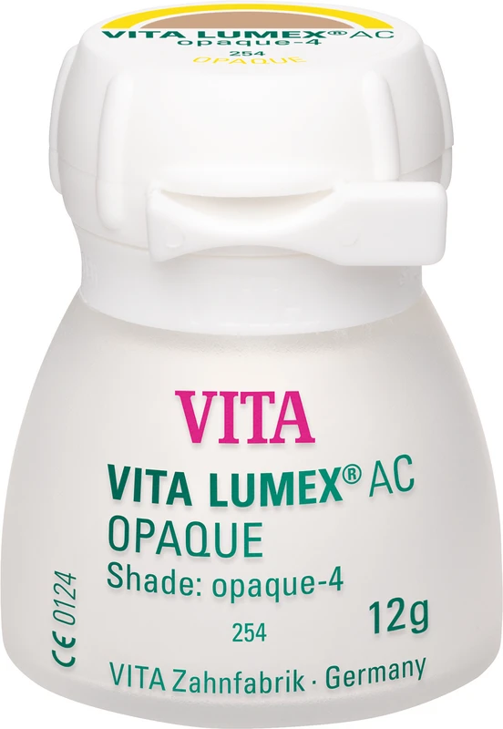 VITA LUMEX® AC ist ein leuzitverstärktes, glaskeramisches Verblendsystem mit innovativer Materialformel für farbtreue, lebendige und verlässliche Ergebnisse. VITA LUMEX AC® umfasst GINGIVA-, OPAQUE-, OPAQUE DENTINE-, DENTINE- und ENAMEL-Massen sowie vielfältige Effektmassen (z. B. OPAL TRANSLUCENT, FLUO INTENSE u.v.m.). Ideal abgestimmte Systemkompnenten wie Pinsel, Brenngutträger, Glasurmasse etc.. Vorteile