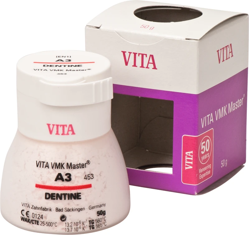 VITA VMK Master ist eine natürliche Feldspat-Verblendkeramik für klassische Aufbrenn-Legierungen (ca. 13,8 15,2 µm/mK).