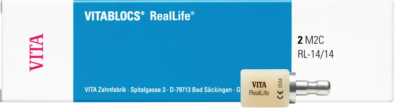 Die innovativen VITABLOCS® RealLife wurden speziell für hochästhetische Frontzahnversorgungen entwickelt. Die dreidimensionale Blockstruktur mit Dentinkern und Schmelzhülle imitiert entsprechend dem natürlichen Zahnaufbau den bogenförmigen Farbverlauf zwischen Dentin und Schneide.