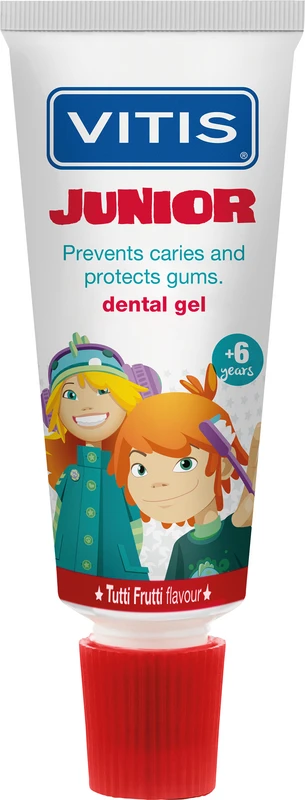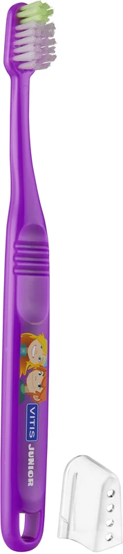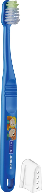 Die VITIS® Junior Zahnbürste ist auf die Kinderhand angepasst. Der kleine Bürstenkopf mit weichen Borsten sorgt für eine bessere Putzgenauigkeit. Das VITIS® Junior Zahngel verhindert Karies und schützt das Zahnfleisch. Mit 1.450 ppm Natriumfluorid.