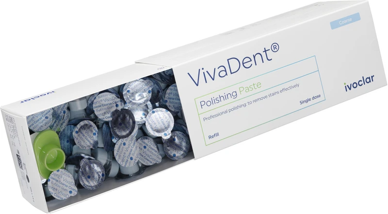 Die VivaDent®-Polierpasten haften aufgrund ihrer geschmeidigen Konsistenz gut an Zähnen und Instrumenten und lassen sich dennoch dank ihrer einzigartigen Zusammensetzung gut abspülen. Sie sind glutenfrei und frei von Mikroplastik. Überzeugen Sie sich von der schonenden und gleichzeitig effektiven Reinigungskraft und Polierwirkung unserer VivaDent®-Polierpasten, die erste Wahl für eine effektive Politur mit minimaler Abrasion der Zahnhartsubstanz. Dank verschiedener Abrasionsstufen und Geschmacksrichtungen ermöglichen unsere VivaDent®-Polierpasten eine bedarfsorientierte Behandlung und sorgen für optimale Ergebnisse bei der professionellen Zahnreinigung unabhängig der Zahnflächen wie z.B. natürliche Zähne, Restaurationen, Implantate oder prothetische Rekonstruktionen. Selbst hochwertige Restaurationen behalten ihren Glanz.
