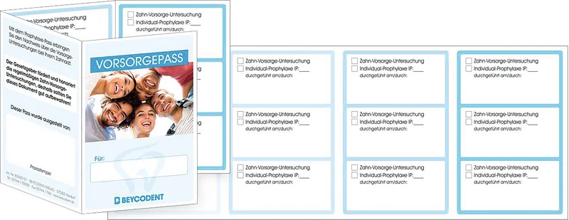 Der Zahn-Vorsorgepass / Prophylaxe-Pass ist zum Eintragen von Vorsorgeuntersuchungen!