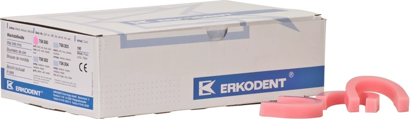 Gebogen für die Vollprothetik. Mit Einziehung auf der Unterseite zur besseren Fixierung auf dem Kieferkamm. Die Wachsbisswälle sind oxydfrei oder oxydhaltig lieferbar. Letztere zeichnen sich durch sehr opake Farben aus, wodurch die optische Beurteilung wesentlich vereinfacht wird.