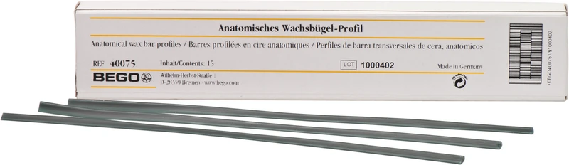 Leicht fixierbar, gute Haftung auf dem Modell. Brennen rückstandlos aus. Länge 17 cm grün. Die bewährten Wachsprofilformen erleichtern die einfache Modellation an einer Vielzahl zahntechnischer Indikationen. Die Wachsprofile sind sehr gut formbar und lassen sich einfach auf dem Einbettmassemodell fixieren. Sie bieten, aufgrund der verwendeten Wachsrezeptur eine sehr hohe Sicherheit gegen unbeabsichtigtes Deformieren und Einschnüren beim Gestalten.