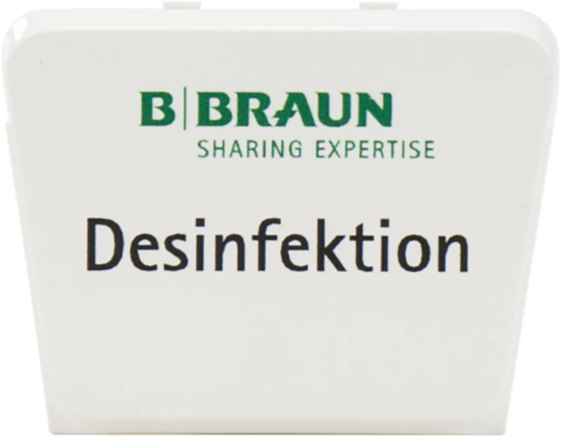 Stück Clip weiß, mit Aufdruck "Desinfektion"