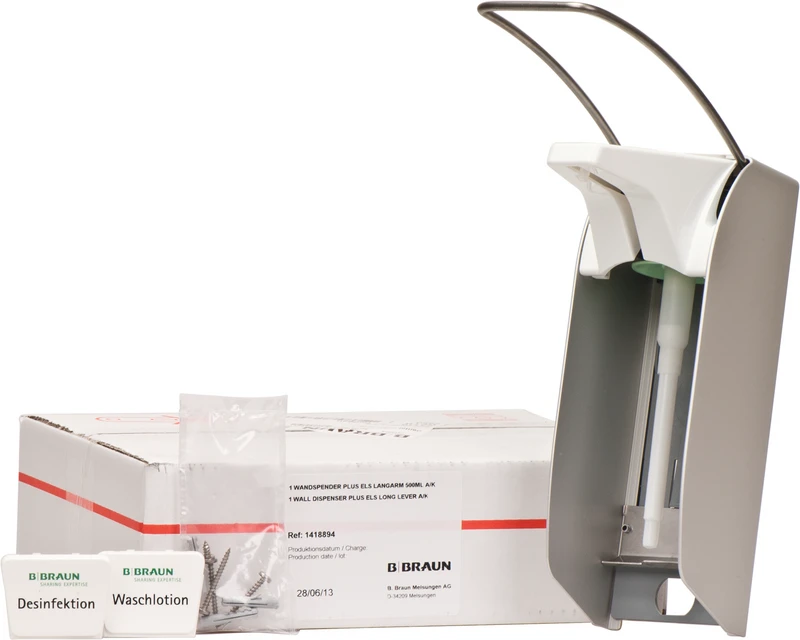 Produktinformationen "Wandspender plus Stück Spender ELS für 500 ml Flasche, Armhebel lang"