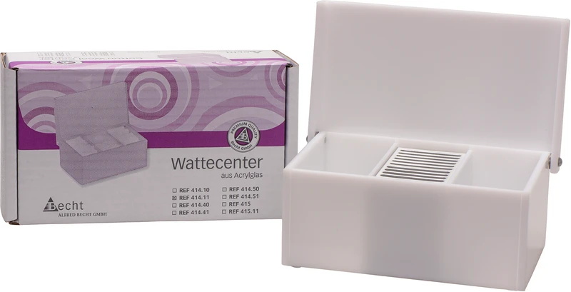 Watte, Watterollen oder Wattepellets perfekt verpackt: Unsere hochwertigen Systeme bieten Ihnen viele Möglichkeiten. Sie bestehen aus solidem Acrylglas, sind form- und wärmebeständig bis 90 °C, verfügen über eine erstaunlich kompakte Größe von 181 x 109 x 80 mm. Ein überstehender Deckel ermöglicht die Einhandbedienung. Und nach RKI-Richtlinie sind unsere Systeme optimal geeignet für den Einsatz in Patientennähe.