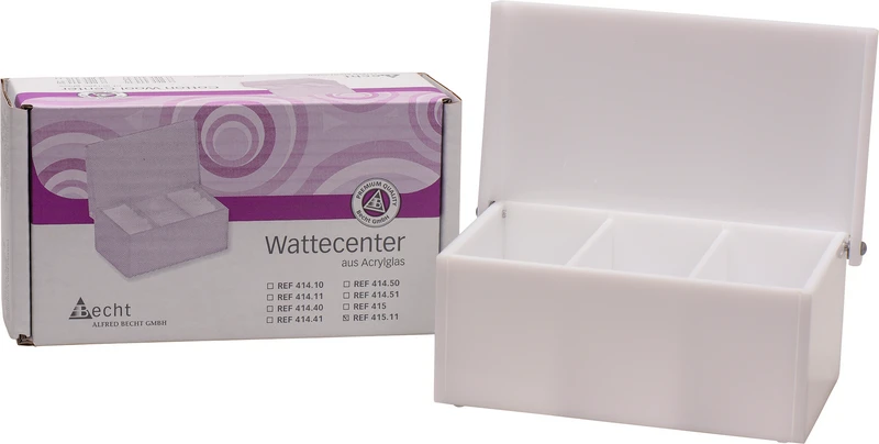 Watte, Watterollen oder Wattepellets perfekt verpackt: Unsere hochwertigen Systeme bieten Ihnen viele Möglichkeiten. Sie bestehen aus solidem Acrylglas, sind form- und wärmebeständig bis 90 °C, verfügen über eine erstaunlich kompakte Größe von 181 x 109 x 80 mm. Ein überstehender Deckel ermöglicht die Einhandbedienung. Und nach RKI-Richtlinie sind unsere Systeme optimal geeignet für den Einsatz in Patientennähe.
