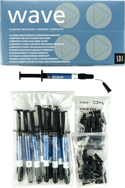 wave ist ein fließfähiges, Fluoride freisetzendes, lichthärtendes Hybridkomposit. wave eignet sich beispielsweise für Restaurationen von minimalvasiven Klassen I und II, Klasse V, zur Fissurenversiegelung und als Liner. Enthält kein Bisphenol-A.