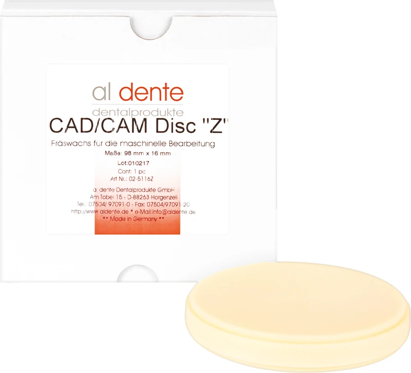 Dieses Wachs wurde speziell auf die CAD/CAM Technik abgestimmt - somit können Kronen und Brücken virtuell modelliert, gefräst und anschließend konventionell gegossen oder gepresst werden. Es lässt sich durch seinen hohen Schmelzpunkt von ca. 130 °C hervorragend maschinell bearbeiten und brennt beim Gießen 100 %ig aus. Die besonderen Materialeigenschaften gewährleisten eine Herstellung von bis zu 70 Frästeilen. Gegenüber allen Einbettmassen verhält sich das Wachs völlig neutral und reaktionsfrei.