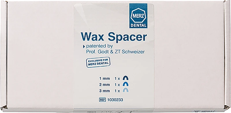 Der Wax Spacer ist ein physiologisches Registrat zur Ermittlung vordefinierter Bisshöhen. Mit ihm lässt sich die Position des Unterkiefers zum Oberkiefer abstandsgenau erfassen. Die in den Wachswall eingearbeitete bissfeste Einlage (Spacer) gewährleistet bereits bei der Kieferrelationsbestimmung die Erfassung der angestrebten Bisserhöhung und einen gleichbleibenden interokklusalen Abstand. Damit bestimmt der Patient selbst die Lagebeziehung in der transversalen und sagittalen Relation beider Kiefer in der vorgesehenen Bisshöhe. Durch den Spacer wird bei der Bissnahme von bezahnten und prothetisch versorgten Kiefern gewährleistet, dass der Patient nicht bis zum Schlussbiss zusammenbeißen kann, sondern nur bis zum eingebauten Stopp (Spacer). Ein Höcker-Höckerkontakt wird dabei ausgeschlossen. Mit dem Wax Spacer wird ohne aufwendige Vermessung der Kiefergelenkrotation eine definierte Bisserhöhung ermittelt. Für unterschiedliche gewünschte Höhen gibt es den Wax Spacer in verschiedenen Stärken (farblich kodiert). So kann eine genaue Positionierung des Unterkiefers in der zu erreichenden therapeutischen Position sicher gestellt werden.