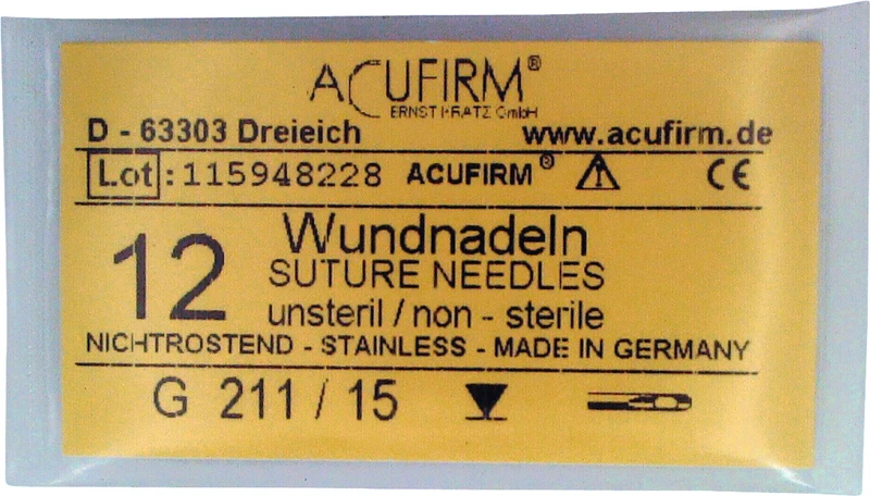 Produktinformationen "Wundnadeln Packung 12 Stück Edelstahl, 211G, 1\2 Kreis, außenschneidend, Größe 15"