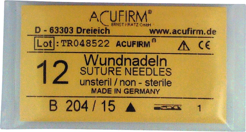 Produktinformationen "Wundnadeln Packung 12 Stück Kohlenstoff, 204B, 3\8 Kreis, innenschneidend, Größe 15"