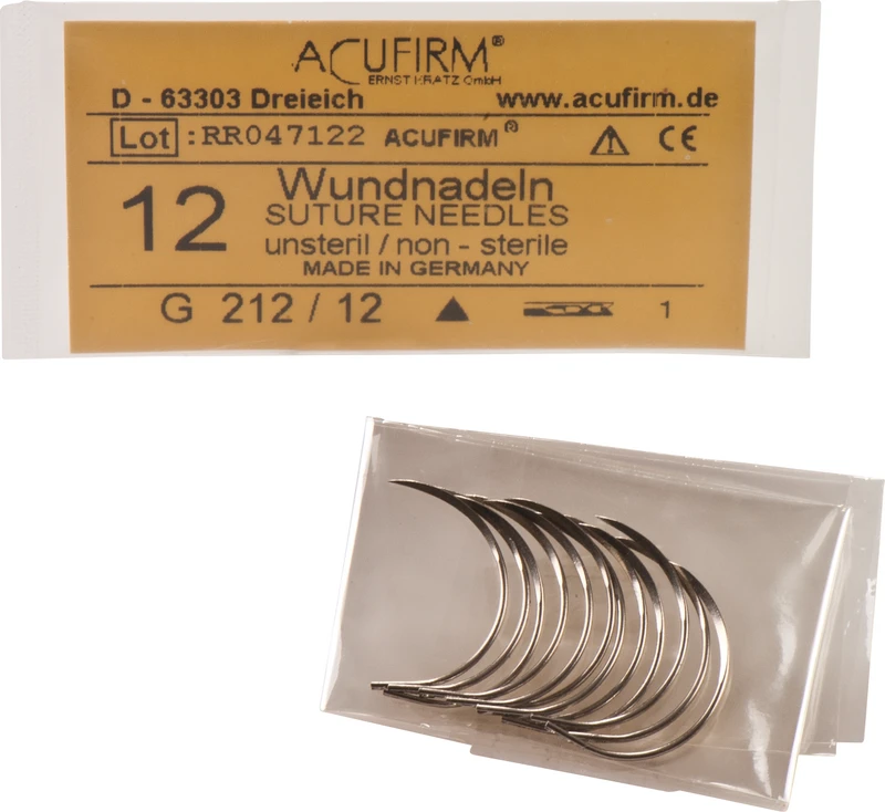 Wundnadeln Packung 12 Stück Kohlenstoff, 212G, 1\2 Kreis, innenschneidend, Größe 12