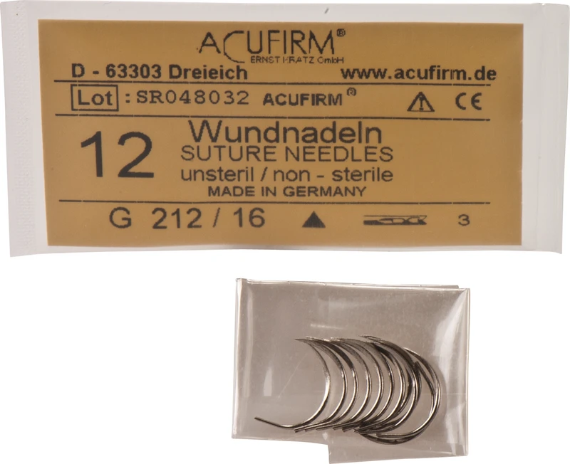 Wundnadeln Packung 12 Stück Kohlenstoff, 212G, 1\2 Kreis, innenschneidend, Größe 16
