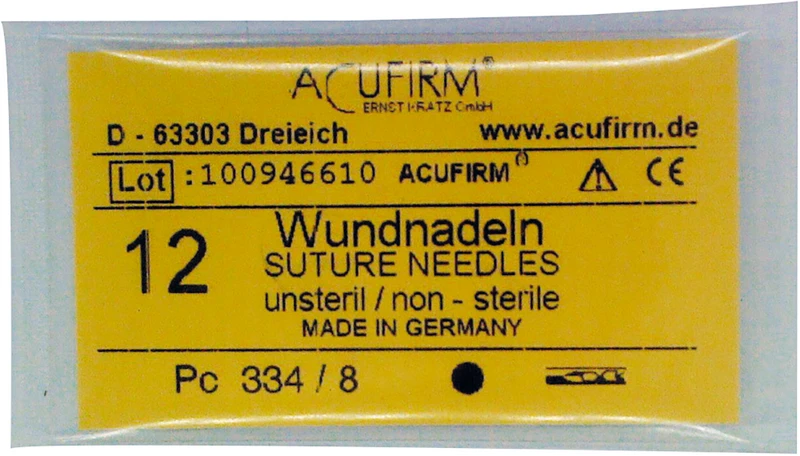 Wundnadeln Packung 12 Stück Kohlenstoff, 334PC, gerade, rund, Größe 8