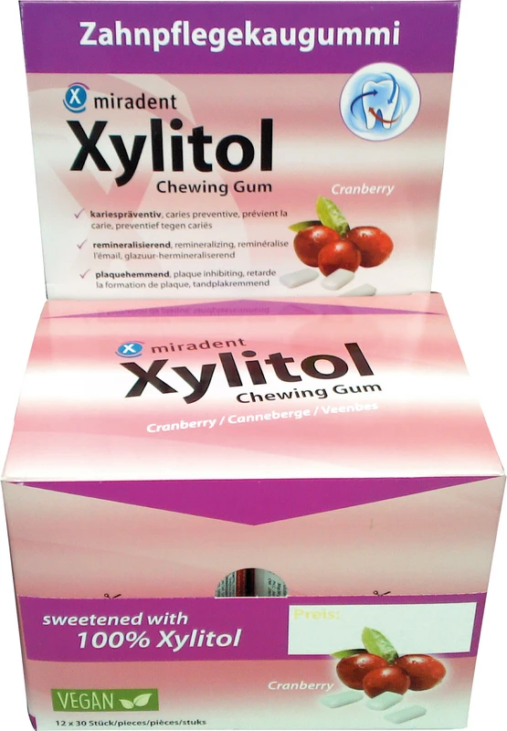 Produktinformationen "Xylitol Chewing Gum Display 12 x 30 Stück Cranberry"