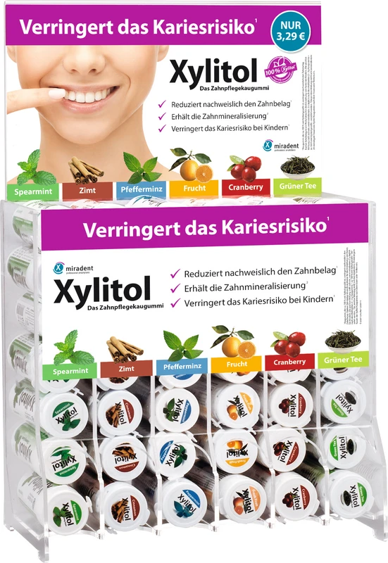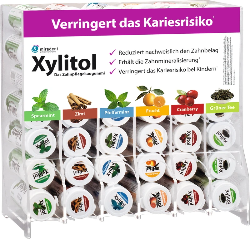 Produktinformationen "Xylitol Chewing Gum Display sortiert, 6 x 12 Dosen (je 30 Stück)"