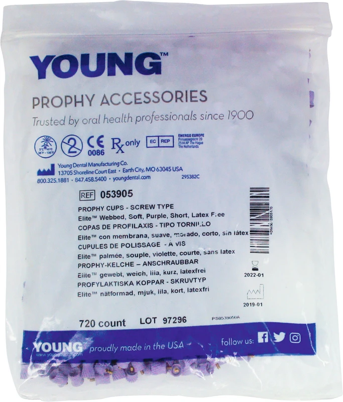 Young Prophylaxekelch Elite weich Packung 720 Stück lila, kurz, weich, Screw Type