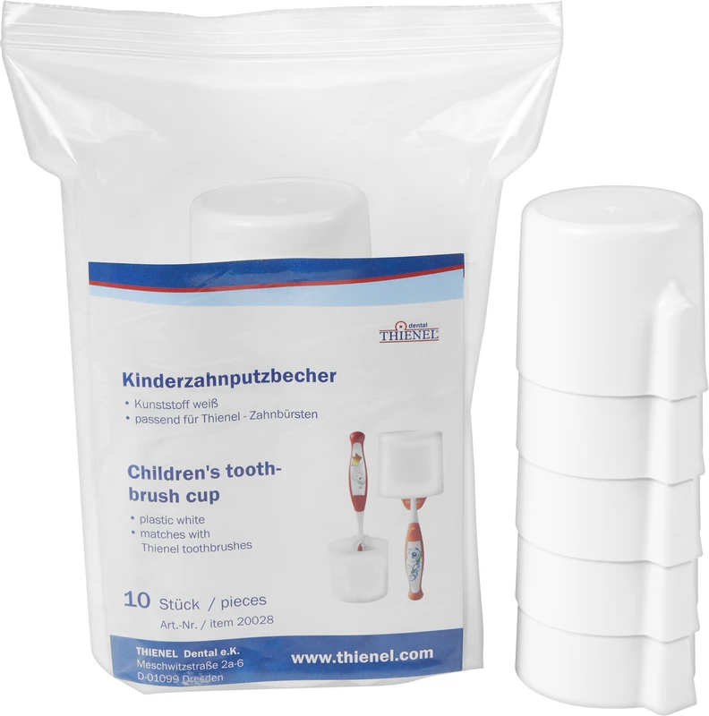 Keine Ablagerungen im Zahnputzbecher mehr! Der innovative THIENELINO-Becher kann einfach kopfüber auf die Zahnbürste im Halter gesteckt werden!