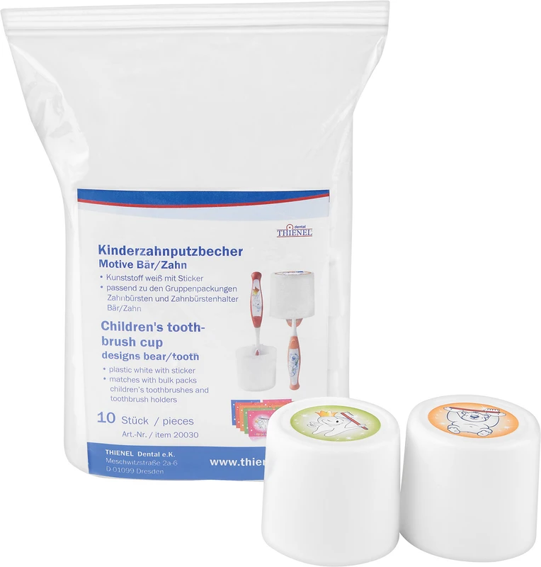 Zahnputzbecher Packung 2 x 5 Stück weiß, mit Motiv (Bär, Zahn)