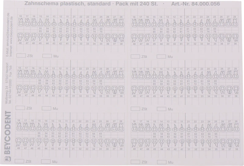 Produktinformationen "Zahnschema plastisch 056 Packung 240 Stück"
