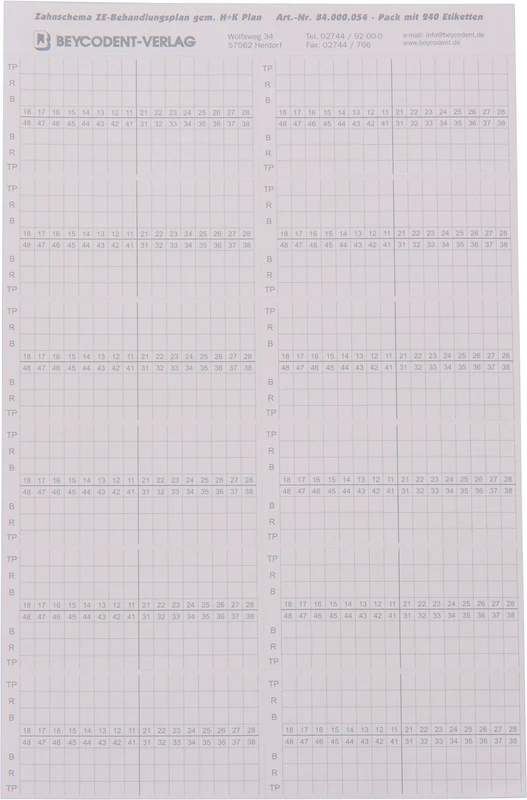 Zahnschema ZE Packung 240 Stück