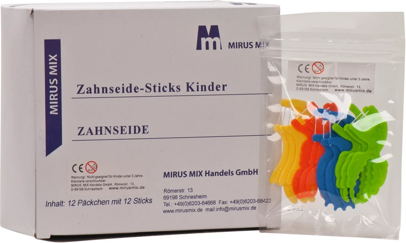 Zahnseide Sticks für Kinder und Jugendliche mit Kindermotiven in verschiedenen Farben. So macht die Zahnhygiene schon den Kleinen Spaß.